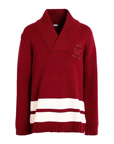 Handgestrickt, Mittelschwerer Strick, Stickerei, Brand Logo, zweifarbiger Print, V-Ausschnitt, lange Ärmel, Gerippte Bündchen, ohne Taschen