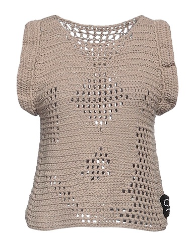 Top, Handgestrickt, Mittelschwerer Strick, einfarbig, Rüschen, Brand Logo, Rundhalsausschnitt, ärmellos