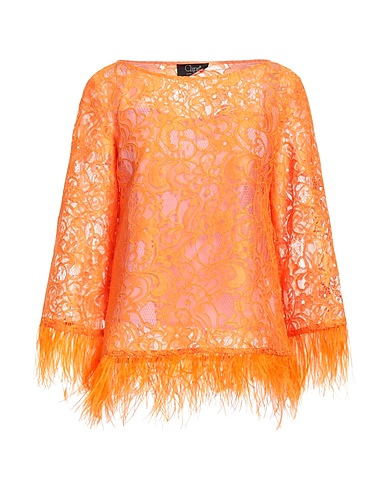 Top, Spitze, einfarbig, Federn, Rundhalsausschnitt, 3/4 Arm, Abnehmbares Unterhemd als Innenfutter, Set 2 Teile, Enthält nichttextile Teile tierischen Ursprungs., Chemische Reinigung, nicht Bleichen, Trockner ungeeignet