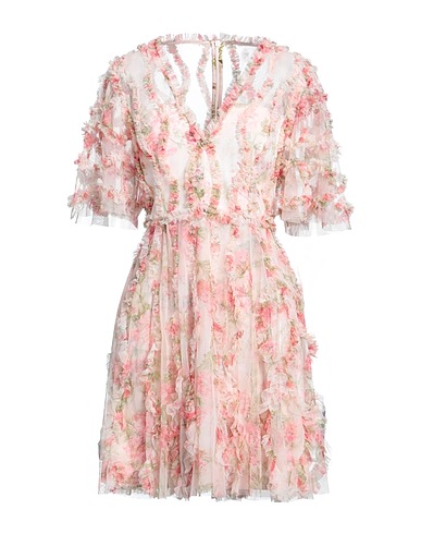 Tüll, V-Ausschnitt, Blumenmuster, kurze Ärmel