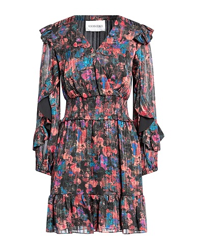Krepp, Lamé, ohne Applikationen, Multicolor-Print, V-Ausschnitt, lange Ärmel, Innen teilweise gefüttert, ohne Taschen, A-Linienmodell