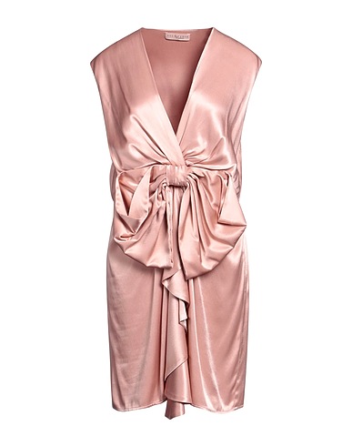 Satin, Schleife, Drappierungen, einfarbig, V-Ausschnitt, kurze Ärmel, Innen teilweise gefüttert, ohne Taschen, Kleid