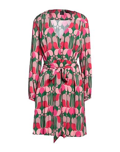 Krepp, Schärpe, Brand Logo, Multicolor-Print, V-Ausschnitt, lange Ärmel, ungefüttert, Knöpfe, ohne Taschen, Modell Hemdblusenkleid
