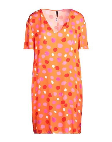 Satin, Brand Logo, Multicolor-Print, V-Ausschnitt, kurze Ärmel, ungefüttert, viele Taschen, Maschinenwäsche oder Reinigung, nicht Bleichen, Trockner ungeeignet, T-Shirt-Kleid