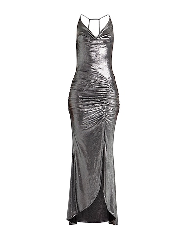 Lamé, Mit Raffung, einfarbig, Drapierter Ausschnitt, ärmellos, ungefüttert, Ohne Taschen, Schlitz seitlich, Stretch, Chemische Reinigung, nicht Bleichen, Trockner ungeeignet, nicht bügeln, Bodycon-Kleid