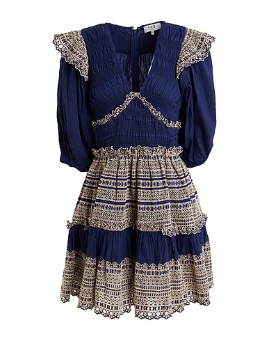A-Linien-Kleid, Tuch, Lochstickerei, zweifarbiger Print, Smokarbeit, V-Ausschnitt, kurze Ärmel, gefüttert, Reißverschluss, Verschluss mit Häkchen, Chemische Reinigung, nicht Bleichen, Trockner ungeeignet, Die Bekleidung dieses Brands fällt groß aus