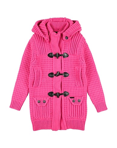 Handgestrickt, Schwerer Strick, einfarbig, Brand Logo, Kragenabschluss mit abnehmbarer Kapuze, Einreiher, lange Ärmel, ungefüttert, Verschluss mit Druckknöpfen, Knebelverschluss, viele Taschen, Handwäsche, nicht Bleichen, Trockner ungeeignet