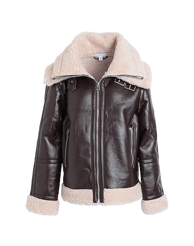 Kunstleder, Sherpa-Stoff, Riemchen, zweifarbiger Print, Rollkragen, Einreiher, lange Ärmel, Innenfutter aus Sherpa-Stoff, Reißverschluss, viele Taschen, Biker-Jacke