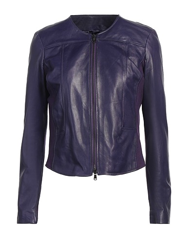 Casual Jacke, Leder, Jersey, einfarbig, ohne Applikationen, Rundhalsausschnitt, Einreiher, lange Ärmel, gefüttert, Reißverschluss, viele Taschen, Enthält nichttextile Teile tierischen Ursprungs., nicht mit Wasser waschen, Trockner ungeeignet, Die Bekleidung dieses Brands fällt klein aus