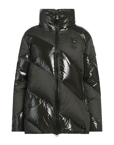 Kurze Daunenjacke, Hightech-Gewebe, gesteppt, Einfarbig mit Applikationen, Brand Logo, Rollkragen, Einreiher, lange Ärmel, mit Entenfedern gefüttert, Reißverschluss, viele Taschen, Taschen mit Reißverschluss, Enthält nichttextile Teile tierischen Ursprungs., Nicht chemisch reinigen, nicht Bleichen, Trockner ungeeignet