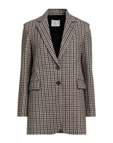Einreihiger Blazer, Sweatshirtstoff, Karomuster, ohne Applikationen, Reverskragen, lange Ärmel, Mit Schulterpolstern, gefüttert, Pattentaschen, Einfache Tasche, Schlitz hinten, Stretch, Maschinenwäsche, nicht Bleichen, Trockner ungeeignet