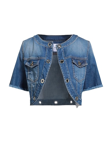Jeansjacke, Denim, Délavé-Effekt, Mit Stretch-Anteil, Brand Logo, Verziert, Einfarbig mit Applikationen, Mittlere Waschung, tiefer Ausschnitt, kurze Ärmel, ungefüttert, Doppelte Tasche, Maschinenwäsche, nicht Bleichen, Trockner ungeeignet