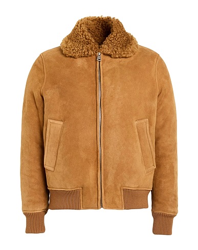 Shearling-Jacke, Wildleder, Shearling-Besatz, Einfassungen aus Strick, einfarbig, Klassischer Kragen, lange Ärmel, Shearling-Futter, Reißverschluss, Leistentaschen, Enthält nichttextile Teile tierischen Ursprungs., nicht mit Wasser waschen, nicht Bleichen, Trockner ungeeignet, nicht bügeln