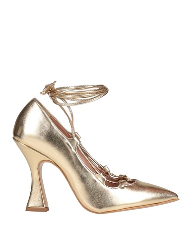 Pumps, Synthetisches Material, Mit Metallic-Effekt, einfarbig, ohne Applikationen, gefüttert, Schnürung am Knöchel, Spitze, Diabolo-Absatz, Ledersohle