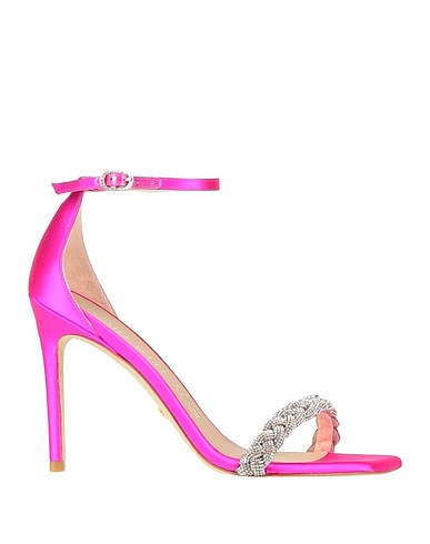 Satin, Kristalle, Einfarbig mit Applikationen, Innenfutter aus Leder, Fesselriemchenverschluss, quadratische Spitze, Stiletto-Absatz, gefasster Absatz, Ledersohle, Enthält nichttextile Teile tierischen Ursprungs., Sandalen mit knöchelriemchen