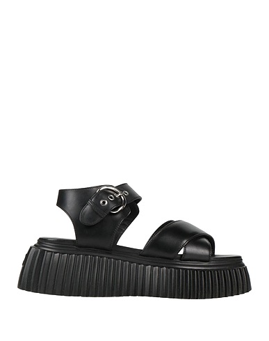 Leder, Brand Logo, einfarbig, Innenfutter aus Leder, Schnallenverschluss, runde Spitze, Keilabsatz, Flatform, Enthält nichttextile Teile tierischen Ursprungs., Sandalen mit knöchelriemchen