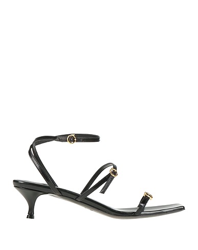 Sandalen mit knöchelriemchen, Leder, ohne Applikationen, einfarbig, Innenfutter aus Leder, Schnallenverschluss, quadratische Spitze, Diabolo-Absatz, Gummisohle, Enthält nichttextile Teile tierischen Ursprungs., klein ausfallend