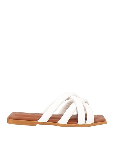 Kunstleder, ohne Applikationen, einfarbig, gefüttert, quadratische Spitze, ohne Absatz, Ledersohle, Enthält nichttextile Teile tierischen Ursprungs., Sandalen