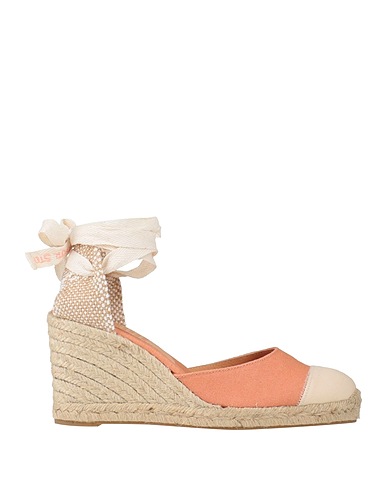 Espadrilles-Sandalen, Canvas, zweifarbiger Print, ohne Applikationen, runde Spitze, Keilform, in Bast eingefasster Absatz, Gummisohle, Innenfutter aus Leder, Enthält nichttextile Teile tierischen Ursprungs.