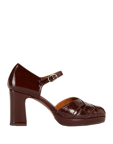 Pumps, Lackleder, einfarbig, ohne Applikationen, Innenfutter aus Leder, Schnallenverschluss, runde Spitze, Blockabsatz, Leder/Gummisohle, Enthält nichttextile Teile tierischen Ursprungs.