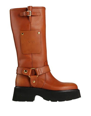 Chunky Boots, Leder, Schnalle, Brand Logo, Einfarbig mit Applikationen, Innenfutter aus Leder, runde Spitze, ohne Absatz, flexible Gummisohle, Enthält nichttextile Teile tierischen Ursprungs., klein ausfallend