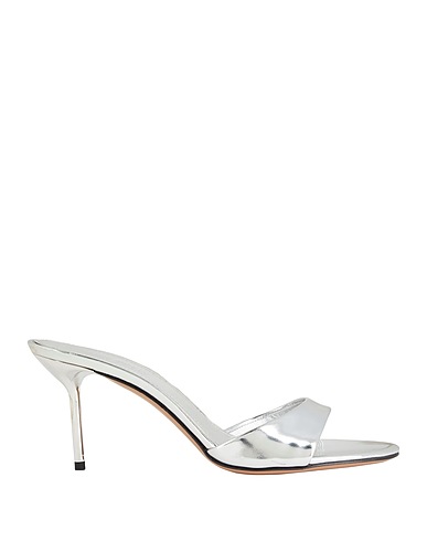 Sandalen mit einem riemen, Leder, Mit Metallic-Effekt, einfarbig, ohne Applikationen, Innenfutter aus Leder, runde Spitze, Pfennigabsatz, Metallabsatz, Ledersohle, Enthält nichttextile Teile tierischen Ursprungs.