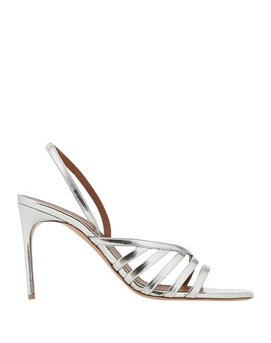 Sandalen mit knöchelriemchen, Leder, Mit Metallic-Effekt, einfarbig, ohne Applikationen, Innenfutter aus Leder, Elastische Einsätze, quadratische Spitze, Stiletto-Absatz, Ledersohle, Enthält nichttextile Teile tierischen Ursprungs., klein ausfallend