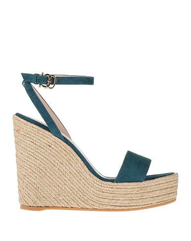 Espadrilles-Sandalen, Wildleder, einfarbig, ohne Applikationen, Innenfutter aus Leder, Schnallenverschluss, runde Spitze, Keilabsatz, Gummisohle, Enthält nichttextile Teile tierischen Ursprungs.