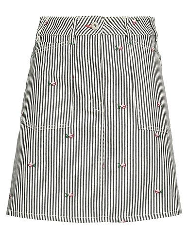 Denim, Brand Logo, Bestickt, Streifen, Colored Wash, ungefüttert, Reißverschluss, 1 Knopf, Fünf Taschen, A-Linien-Rock