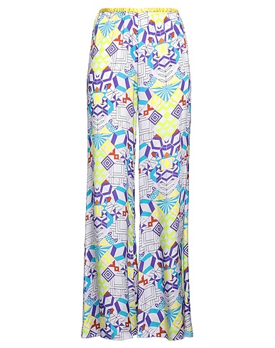 Hosen im Pyjamastil, Satin, ohne Applikationen, Multicolor-Print, hohe Taille, Taille mit Gummiband, Regular fit, Ohne Taschen, Maschinenwäsche oder Reinigung, nicht Bleichen, Trockner ungeeignet, Die Bekleidung dieses Brands fällt groß aus