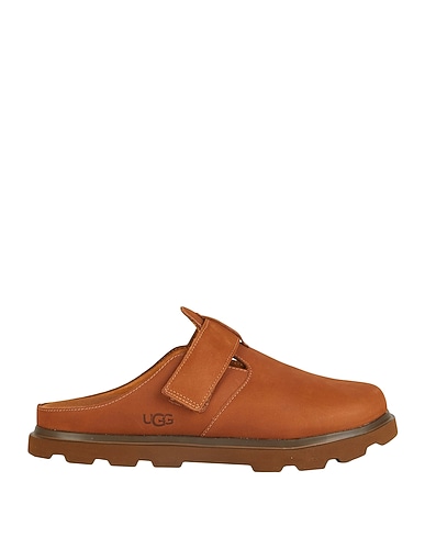 Mules, Nubukleder, einfarbig, Brand Logo, Innenfutter aus Stoff, Velcro-Klettverschluss, runde Spitze, ohne Absatz, Gummisohle, Enthält nichttextile Teile tierischen Ursprungs.