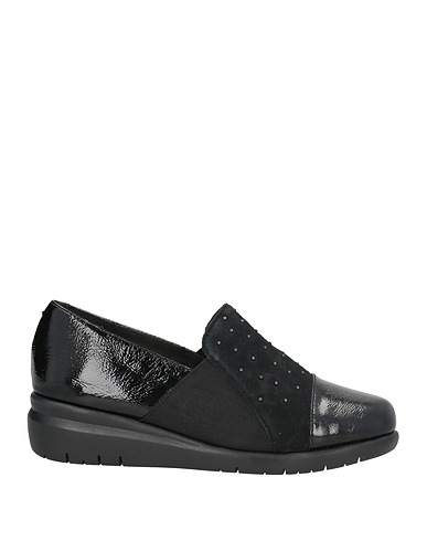 Loafers, Lackleder, Nieten, Wildlederbesatz , Einfarbig mit Applikationen, Innenfutter aus Leder, Elastische Einsätze, runde Spitze, Keilabsatz, flexible Gummisohle, Enthält nichttextile Teile tierischen Ursprungs.
