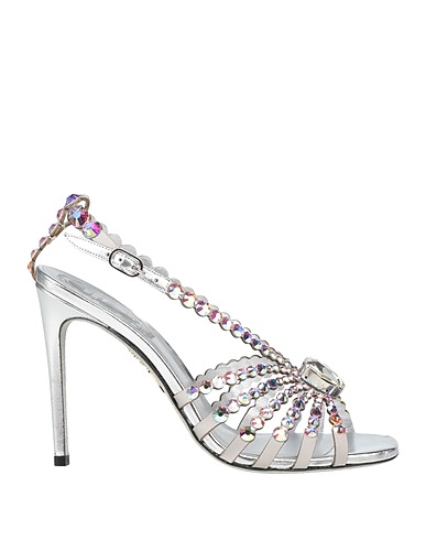 Slingback-Sandalen, Leder, Satin, Mit Metallic-Effekt, Einfarbig mit Applikationen, Kristalle, runde Spitze, Pfennigabsatz, Ledersohle, Innenfutter aus Leder, Enthält nichttextile Teile tierischen Ursprungs., Ein Hauch von Glamour für einen eleganten Auftritt bei Ihrer nächsten Cocktail-Party
