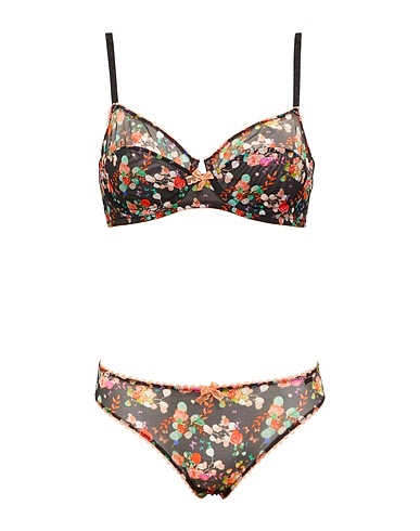 Tüll, Brand Logo, Schleife, Blumenmuster, Verschluss mit Häkchen, ungefüttert, Bügel-BH, Stretch, Handwäsche, Trockner ungeeignet, nicht Bleichen