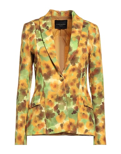 Krepp, ohne Applikationen, Multicolor-Print, Reverskragen, Einreiher, lange Ärmel, gefüttert, 1 Knopf, viele Taschen, Stretch, Einreiher