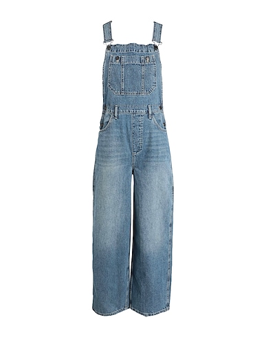 Denim, Délavé-Effekt, ohne Applikationen, einfarbig, Mittlere Waschung, Latzoberteil, ärmellos, Knopfverschluss, viele Taschen