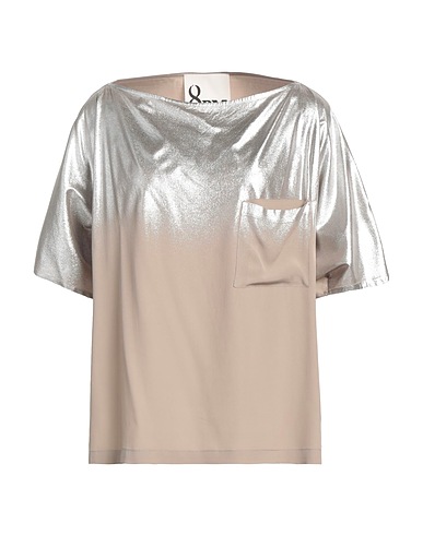 t-shirt, crepe, metallic, two-tone, no appliqués, scoop
