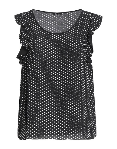 crepe, no appliqués, polka-dot, crewneck, short sleeves, unlined, no pockets, top