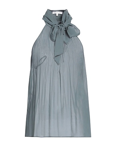 bow blouse, crepe, belt, solid color, bow-tie neckline, sleeveless, button fastenings, no pockets