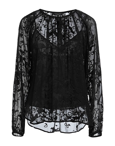 top, chiffon, satin, solid color, no appliqués, crewneck, long sleeves, snap-fastening cuffs, detachable lining, hook fastenings