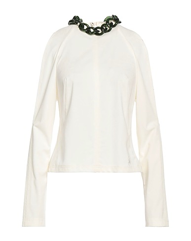 off-the-shoulder top, jersey, solid color with appliqués, embellished, embroidered logo, long sleeves, zipper fastening, stretch, this brand runs small