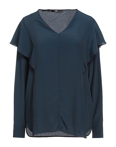 top, crepe, solid color, no appliqués, v-neck, long sleeves