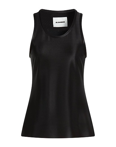 top, satin, solid color, no appliqués, crewneck, sleeveless, stretch