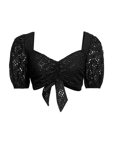 crop top, lace, solid color, no appliqués, deep neckline, short sleeves, partially lined, dry clean, do not bleach, do not tumble dry, do not iron