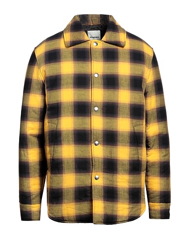 woven, no appliqués, checked, classic collar, long sleeves, internal padding, snap fastenings, multipockets, overshirt