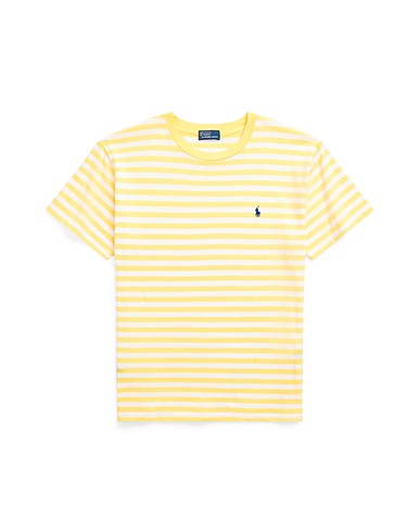 jersey, embroidered logo, striped, crewneck, short sleeves, machine wash or dry clean, tumble dry, printed t-shirt