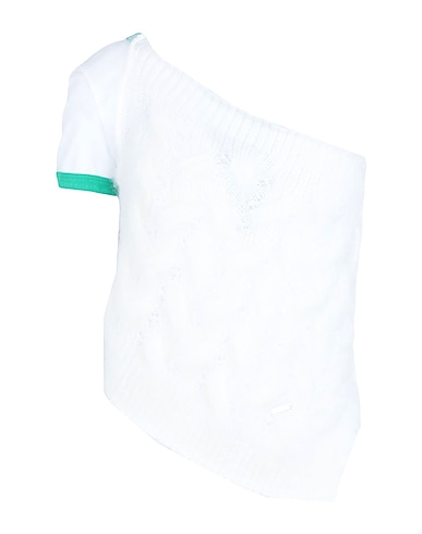 jersey, cable-knit, lightweight knit, brand logo, two-tone, one-shoulder, without pockets, dry clean, do not bleach, do not tumble dry, one-shoulder top