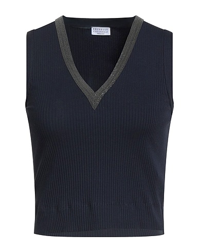 top, ribbed jersey, stretchy fabric, solid color with appliqués, embellished, v-neck, sleeveless, dry clean, do not bleach, do not tumble dry