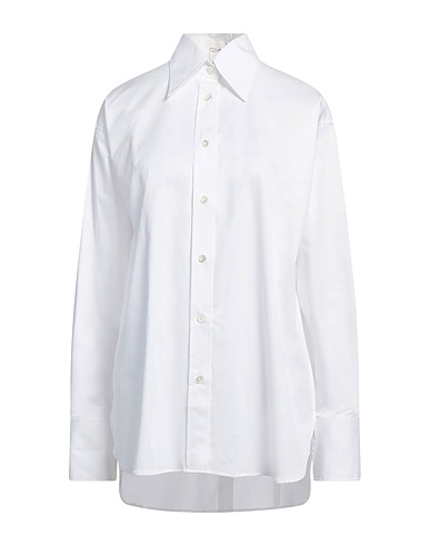 shirt, poplin, solid color, no appliqués, classic collar, long sleeves, buttoned cuffs, button fastenings, asymmetric hem, stretch, machine wash or dry clean, do not bleach, do not tumble dry