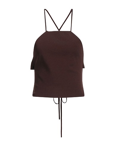 crop top, knitted, ribbed, lightweight knit, solid color, open back, square neckline, sleeveless, hand wash or dry clean, do not bleach, do not tumble dry